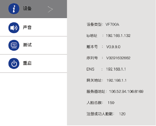 进入设备界面后,按下“密码 ”按钮,再按下“设置 ”按钮,输入管理管理密码“115200”后按下“确认 ”按钮,即可查看系统信息。